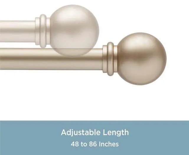 The 5/8 inch diameter Chelsea curtain rod in soft brass features matching ball finial ends. Use in your kitchen, bedroom, dining room, and living room to hang light to medium weight curtains. The telescoping rod adjusts from 48 inches to 86 inches to fit your window and projects 3 inches from the wall. It is ideal for hanging curtains with pockets, grommets, back tabs, and tab tops, but can also be used with clip rings.