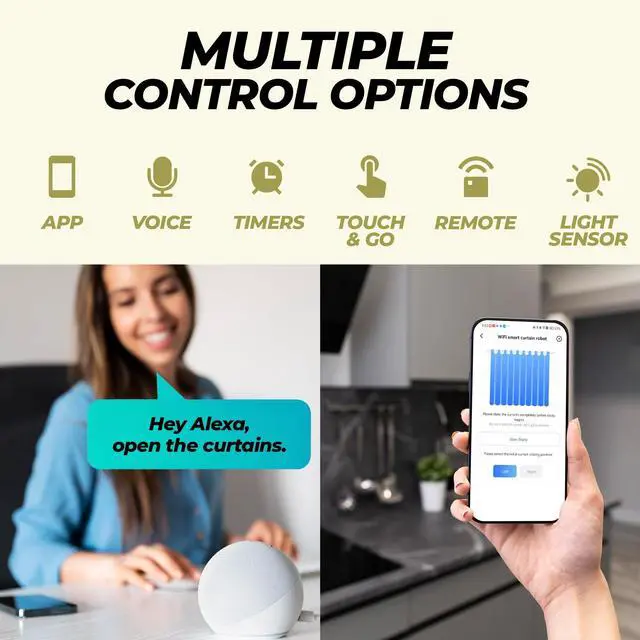 Multiple Control Options: Manage your curtains with ease using our app, which lets you control opening, closing, and open percentage. Set custom schedules for fully automated curtains. you can also use Smartlife Alexa, Google Home, SmartThings, Siri Shortcuts, and IFTTT . Note that two units are necessary if your curtains open in the middle.