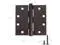 These are approved for use on fire-rated doors and meet ANSI/BHMA standards. Hinges are mortise mount (designed to be flushed into the door and jamb, as opposed to surface mounted), and are sold in a set of 3. Each hinge leaf is 4.5 inches in height and is pre-drilled with four countersunk holes arranged in a half moon shape. Eight No. 12 - 1/4" wood screws and eight 1/2" machine screws are included per hinge for fast and easy installation in any type of door. Hinges have approximately a 270-degree range of motion.