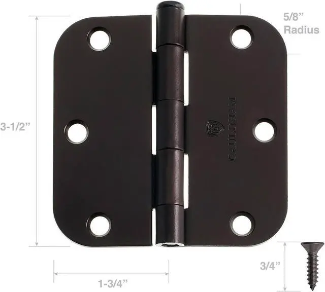 Each hinge leaf is 3.5 inches in height and is pre-drilled with three countersunk holes arranged in a half moon shape. Six No. 9 x 3/4" wood mounting screws are included per hinge for fast and easy installation. Hinges have approximately a 270-degree range of motion. Cauldham is the premier source for professional-grade hardware and fixtures that combine stylish design with exceptional reliability and durability.