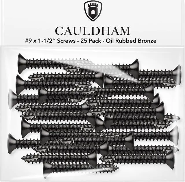 Cauldham Oil Rubbed Bronze Wood Screws #9 x 1-1/2 Inch for Door Hinges - 25 pack