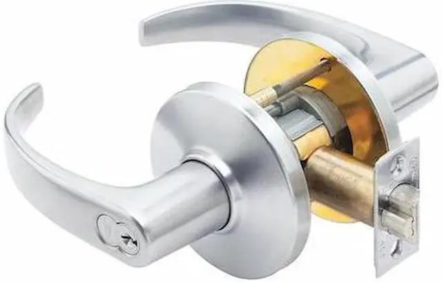 Mechanical, Lever, Cylindrical, Lockset Function Entrance, Office, Lockset Grade 1, Style Curved Return Lever, Lockset Finish Satin Chrome, Keyway Type Coreless, Key Type Keys Not Included (Lock Sold Less Core), Standards ANSI, BHMA, UL Listed, ADA Compliant Yes, Lockset Fire Rating 3 hr., Backset 2-3/4 In., Ligature Resistant No, Cylinder Core Type Not Included, Features C-Rose, For Use With Various Door Types, Handle Material Zinc, Includes Hardware, Item Door Lever Lockset. This item has been restricted from sale in the following state (s): []