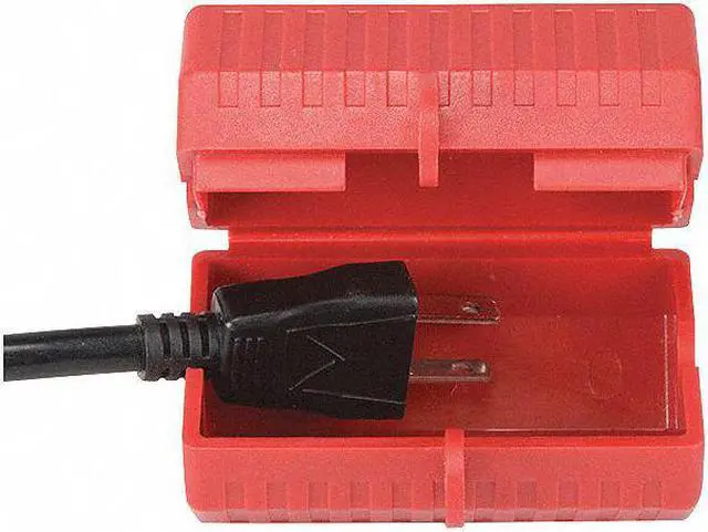 Plug Lockout, Red, Padlock Shackle Max. Dia. 9/32 in, Max. Number of Padlocks 1, Fits Most 110 V AC Plugs with Cord Up to 1/2 in dia, Max. Cord Dia. 1/2 in, Material Plastic, Voltage 110, Legend Danger Locked Out, Includes