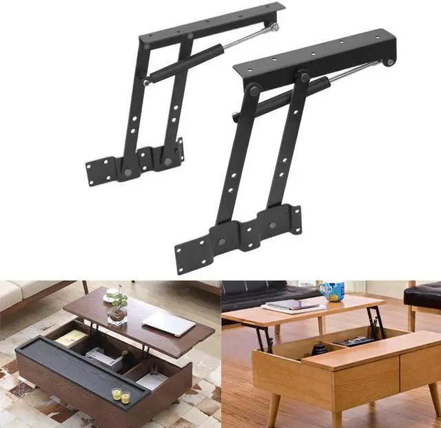 Features: Turn your normal coffee table into a functional coffee table, and also can be used to change the function of other furniture. This furniture mechanism hinge lift is perfect for DIY wood coffee table projects. Convertible Lift Top Coffee Table Hardware Furniture Hinge with Lift Up Spring Hinge Gas Hydraulic Hinge Mechanism Made by heavy duty metal won't bend. It will hold max. 220lbs when opening. Perfectly suit for table, cabinet and desk, ect. Turn your normal coffee table into a functional coffee table, and also can be used to change the function of other furniture. This furniture mechanism hinge lift is perfect for DIY wood coffee table projects. No instruction included. Screws are not included. You need to prepare by yourself.