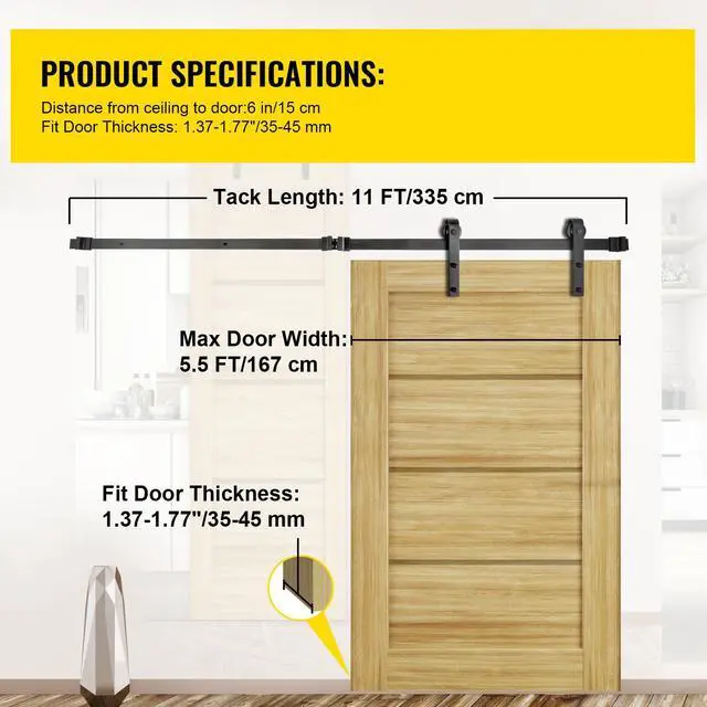 Sliding Barn Door Hardware Kit, 11FT Barn Door Kit, 330LBS Load-Bearing Double Barn Door Hardware Kit, Carbon Steel Barn Door Track, Darn Door for 1.37-1.77\" Thickness & 5.5FT Wide Door Panel