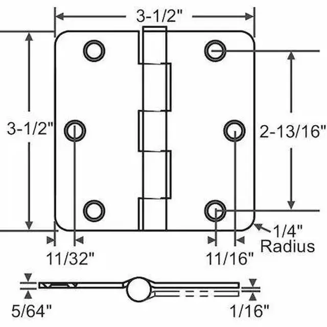 Butt Hinge, Steel, Satin Brass Finish, 100 lb Load Capacity, With Holes, 3 Holes per Leaf, No Ligature Resistant, 160 Degrees Range of Motion, Orientation Non Handed, 3 1/2 in Door Leaf Height, 3 1/2 in Frame Leaf Height, 3 1/2 in Door Leaf Width, 3 1/2 in Frame Leaf Width, 0.063 in Door Leaf Thickness, 0.063 in Frame Leaf Thickness, 1-3/8 in Required Door Thickness, Plain Bearing Type, 1/4 in Radius Corners, Included Hardware, 3 hr Fire Rating - Door Hardware, Features Reversible Hinges, 1 Pair.