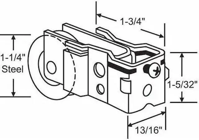 Roller Assembly, Roller, Steel, Gray, Plated Finish, Length (In. ) 3, Height (In. ) 3/4, Width (In. ) 1-1/2, Outside Dia. 1-1/4, Max. Wheel Dia. (In. ) 1-1/4, Roller Width/Dia. (In. ) 1-1/4, Door Mounting, Steel Bearings, Steel, Requires Hardware, For Use With Patio Glass Door