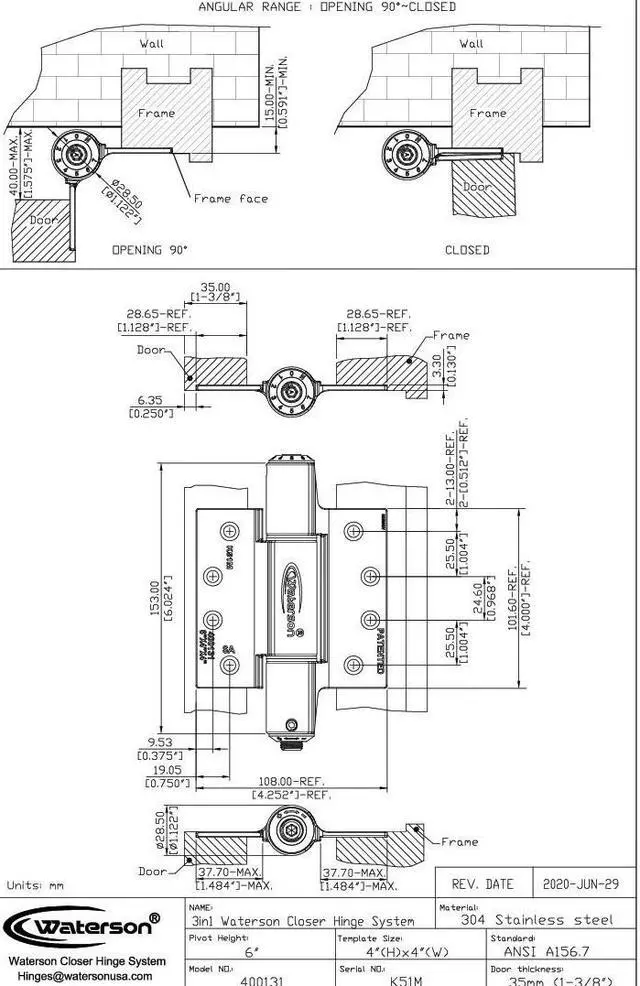 VERSATILE - Suitable for fire-rated metal doors, interior wood doors, frameless glass openings and gate applications. Maximum loading up to 440 pounds ( 200kg). Fitting for concealed doors, interior and exterior swing doors of all kinds.