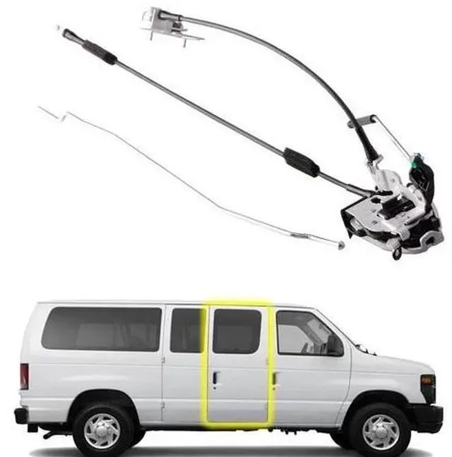 Side Hinged Door Latch Assembly compatible for Ford E150 E250 E350 RH Side Door Lock Latch with Cable&Rod
