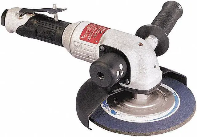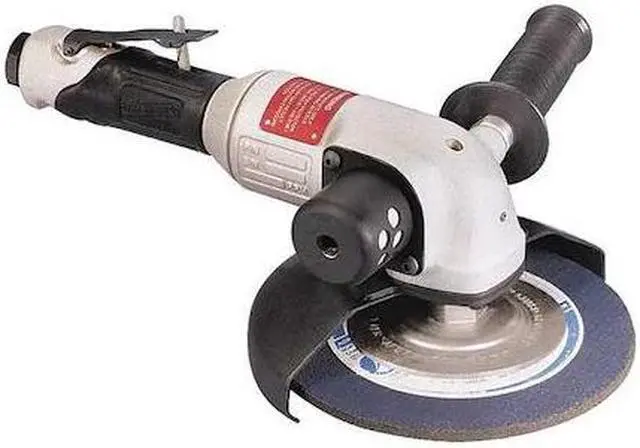 Air Grinder, Grinder Orientation Angle, Free Speed 6, 000 RPM, Wheel Dia. 7 in, Wheel Type Type 27, HP 1.2 hp, Heavy Duty, Average CFM @ 15 Second Run Time 10.75, CFM @ Full Load 43.0, Air Inlet 1/2 in NPT, Required Pressure 90 psi, Min. Hose Size 1/2 in, Overall Length 11 3/4 in, Handle Material Composite, Variable Speed No, Exhaust Side, Throttle Lever, Lock Yes, Includes 11399 Type 27 Wheel Mounting Adapter Kit, Front and Rear Flange and Hex Wrench, Grinder Type Type 27.