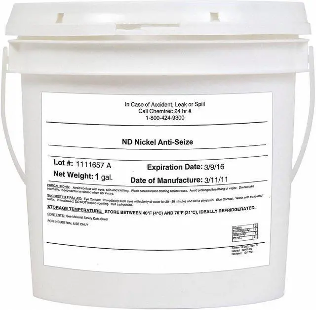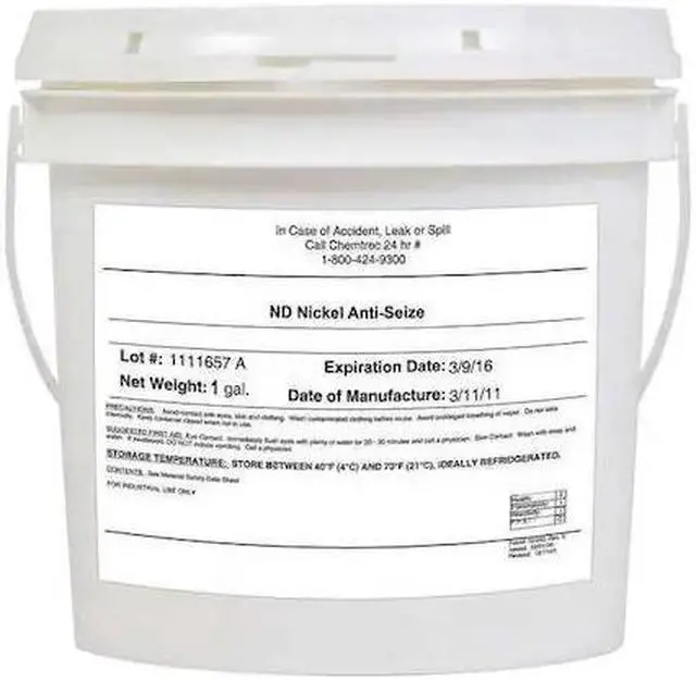 California Proposition 65: This product contains a chemical known to the State of California to cause birth defects or other reproductive harm. General Purpose Anti-Seize, 1 gal, Jug, Nickel, Paste, 9072, -65 Degrees F, 2, 600 Degrees F, Vibra-Tite, Silver, Non-Flammable. This item has been restricted from sale in the following state (s): []