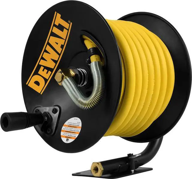 The DEWALT 3/8 in. x 50 ft. Manual Hose Reel is the perfect accessory for any air tool and any air compressor that operates at 300 PSI or less.