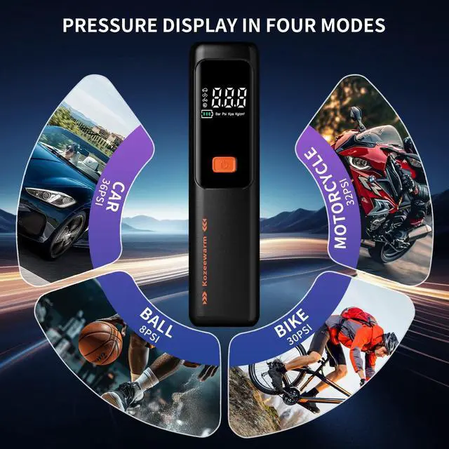 Tire Inflator Portable Air Compressor Fast Inflation, Auto Shut-Off, Cordless Rechargeable Car Tire Pump with Digital Pressure Gauge for Car, SUV, Motorcycle, Bicycle & Balls