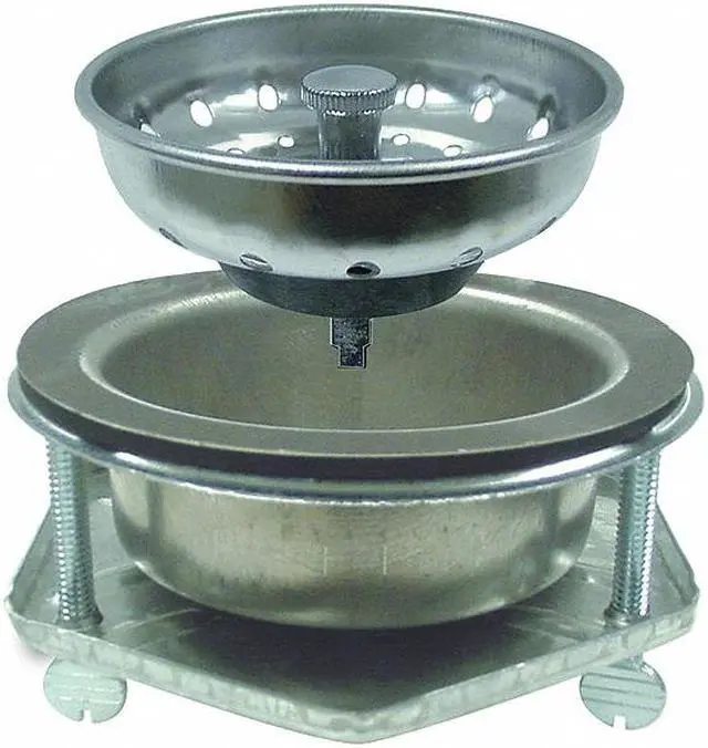 Strainer, ADA Compliant No, Product Type Sink Drain, Pipe Outside Diameter 4 1/2 in, Shape Round, Strainer Material Stainless Steel, Basin Finish Chrome, Grate Surface Type Round Holes, Color Silver, Overall Height 3 in, Connection Type Gasket, Drain Material Stainless Steel. This item has been restricted from sale in the following state (s): []