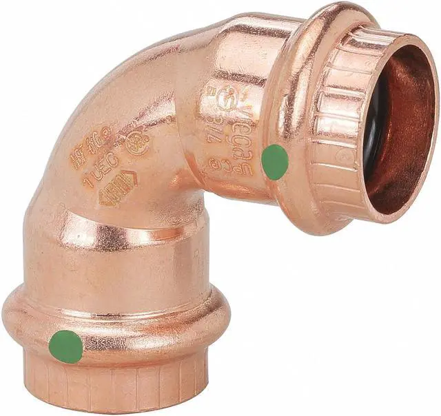 Crimp Elbow Fitting, Application Potable Water, Fitting Side A Connection Type Press-Fit, Fitting Side B Connection Type Press-Fit, Fitting Side A Copper Tube Size 1 in, Fitting Side B Copper Tube Size 1 in, Fitting Material Copper, O-Ring Material EPDM, Specific Fitting Shape 90 Degrees Elbow, Number of Bolt Holes Not Applicable, Flange Thickness Not Applicable, Maximum Operating Pressure 200 psi, Maximum Operating Temperature 250 Degrees F, Standards ASTM B75, ASTM B88. This item has been restricted from sale in the following state (s): []