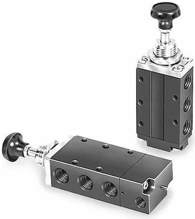 Manual Air Control Valve, Valve Ways and Positions 4-Way/2-Position, Valve Port Size 1/4 in, Connection NPT, Valve Actuator / Return Button / Spring, Max. CFM - Valves 0.83 cfm, Valve Max. Pressure Rating 150 psi, Valve Temp. Range 32 Degrees to 175 Degrees F, Center Position Not Applicable, Coefficient of Volume 0.8, Body Material Aluminum, Overall Length 5 3/4 in, Overall Height 1 5/8 in, Overall Width 1 1/16 in, Series DirectAir 4, Manual Air Control Valve. This item has been restricted from sale in the following state (s): []