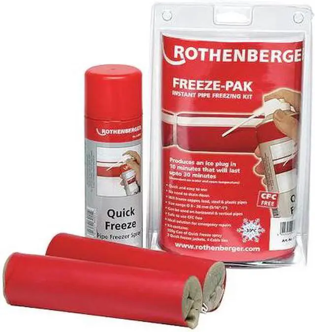 California Proposition 65: This product contains a chemical known to the State of California to cause cancer. Pipe Freezing Spray Kit, Material Application Copper, Steel, Average Freezes per Can 20, Can Size 304 mL, Time to Freeze As Little as 10 min, Minimum Steel Pipe Size 5/16 in, Maximum Steel Pipe Size 1 in, Maximum Freeze Duration 30 min, Maximum Copper Tube Size 1 in, Minimum Copper Tube Size 5/16 in, Formula CFC Free