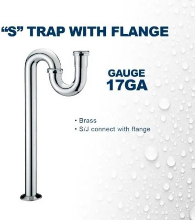 EVERFLOW 12915 S-Trap with Flange for Tubular Drain Applications, 17GA Chrome