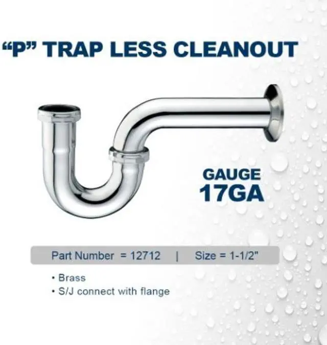 EVERFLOW 12712 P-Trap for Tubular Drain Applications, 17GA Chrome Plated Brass