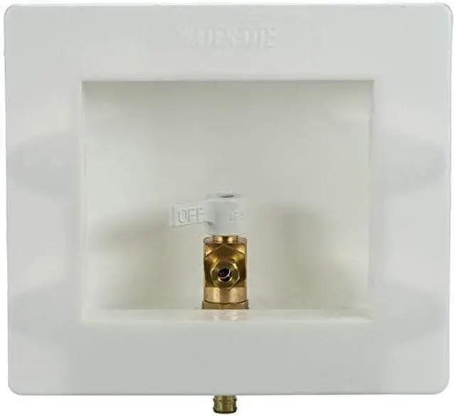 Outlet Box, Washing Machine, Inlet Connection PEX 1807, Box Width 8-1/4 In., Box Height 6-1/8 In., Box Depth 3-3/4 In., Faceplate Width 10-3/16 In., Faceplate Height 8-13/16 In., Drain Location Center, Valve Connection 1/4 In. Turn, Material of Construction Brass, Standards UPC, Includes (2) Locknuts, (2) Valves, (2) Mounting Flanges, Compliance ASME A 112.18. 1. This item has been restricted from sale in the following state (s): []