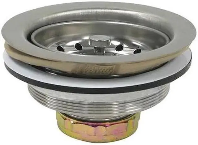 California Proposition 65: This product contains a chemical known to the State of California to cause birth defects or other reproductive harm. Strainer, ADA Compliant No, Product Type Sink Drain, Pipe Outside Diameter 1 1/2 in, Standards IAPMO, Shape Round, Strainer Material Stainless Steel, Basin Finish Chrome, Grate Surface Type Round Holes, Color Silver, Overall Height 3 in, Connection Type Threaded, Drain Material Stainless Steel