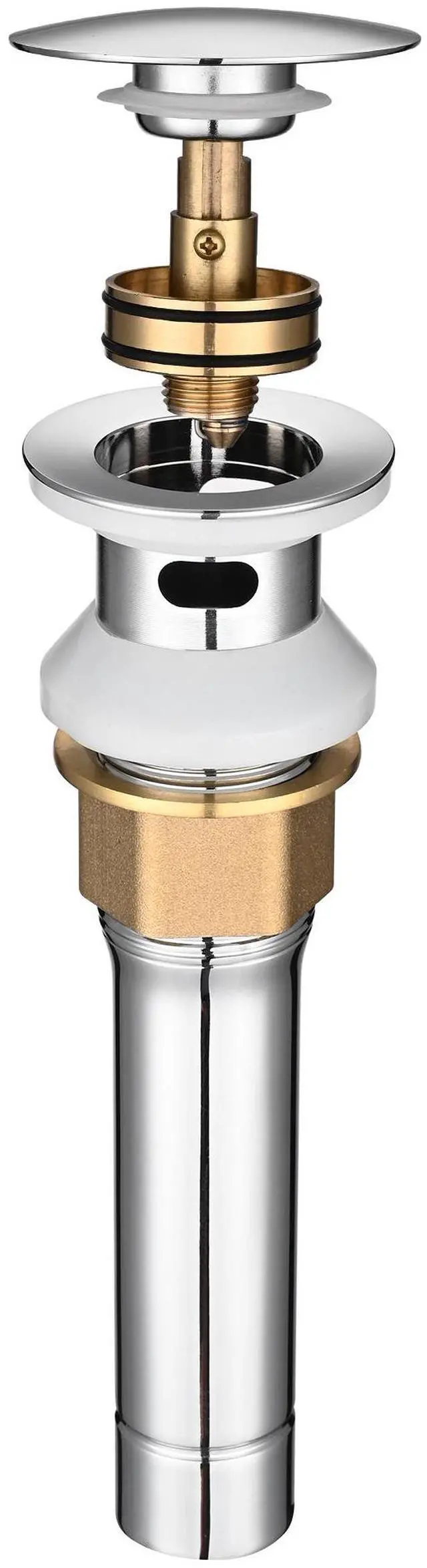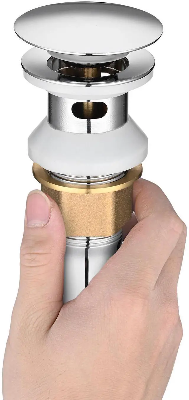 - Pop up Drain - Aquaterior Chrome Pop up Drain with overflow features spring-loaded pop-up stopper which opens and closes by simply pressing the top for rapid discharge and sealing; Fits 1 7/16" to 2 5/16" sink drain holes and 1" to 2 3/4" thickness sink deck, suitable for tabletop or under-mount sinks with overflow while its polished chrome surface perfectly matching your modern style decor