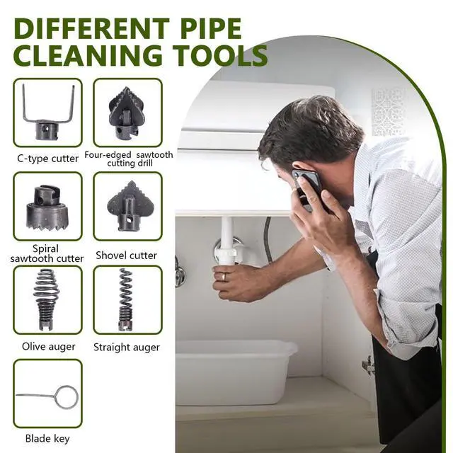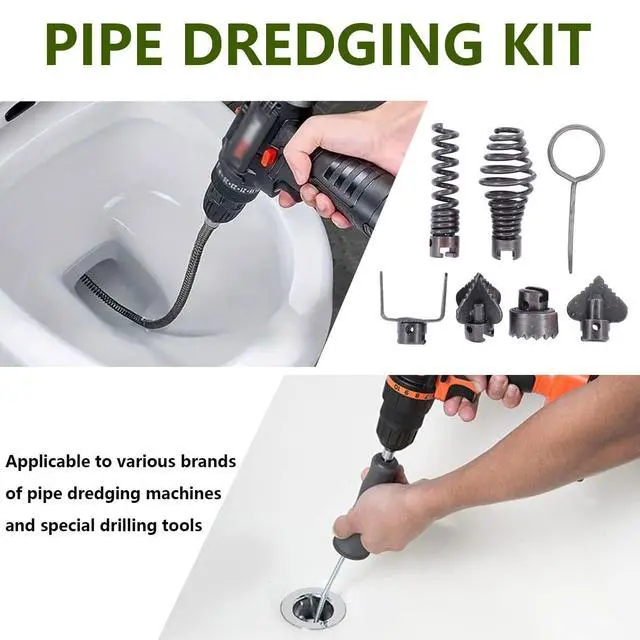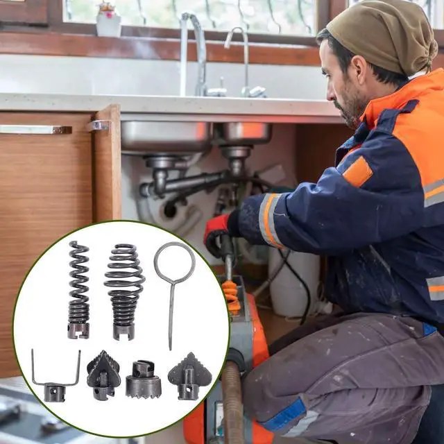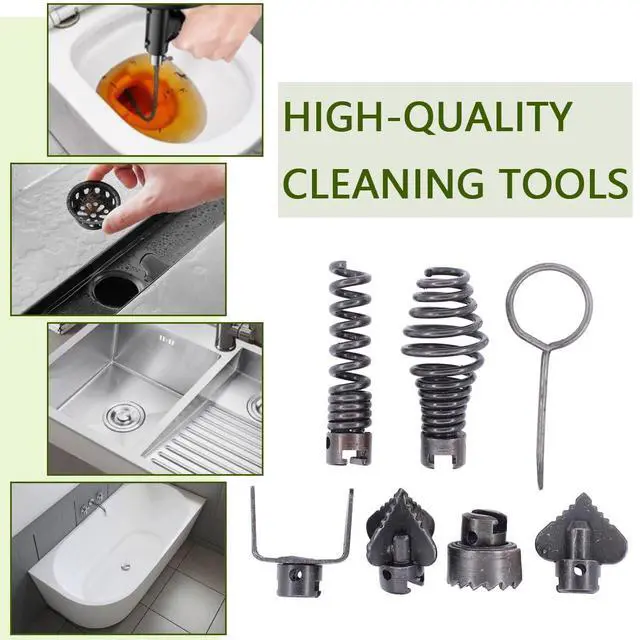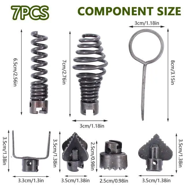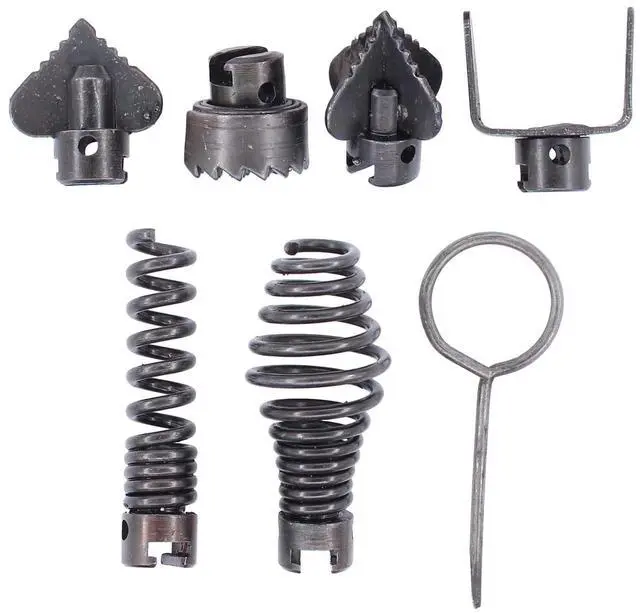 7Pcs Drain Cleaner Combination Cutter Head Set,Pipe Cleaning Dredging Tools for Drain Cleaner, 16mm Manganese Steel Spring Automatic Locking Drain Dredging Cutter Head Accessories Pipeline Dredging Machine Parts