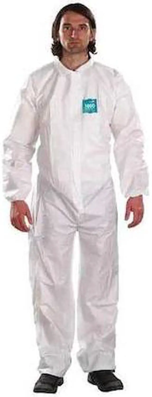 Coveralls, Ankle Closure Elastic, Anti-Static Yes, Attached Hood No, Breathable Back Style Not Applicable, Clean Process Status Not Clean Processed, Closure Features Storm Flap, Two-Way Zipper, Closure Type Zipper, Color White, Coverall Style Collared, Cuff Style Elastic, EPA Protection Level Not Rated, Features Limited Surface Defect Risks, Gas Tight No, Hazard Type Non-Hazardous Liquids, Height - Maximum 70 in, Height - Minimum 65 in, High-Visibility No, Includes Boot Covers No