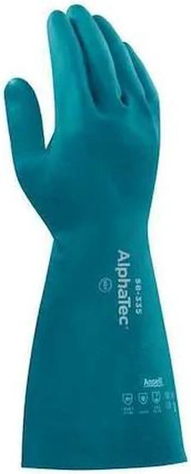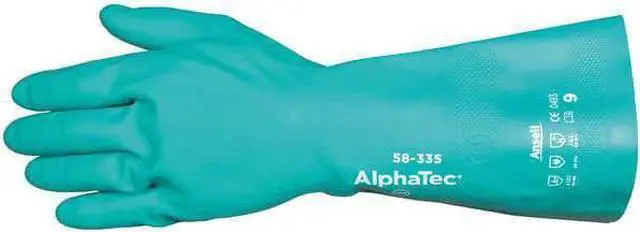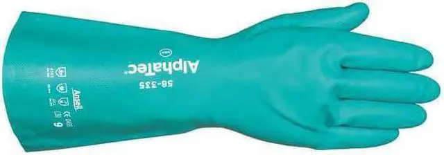Chemical Resistant Gloves, Nitrile, Fingers Only, 28 mil, 15 in, Cuff Gauntlet, Lining Nitrile, Glove Size 10, Color Green, Unsupported, Standards ANSI, EN 388, EN 374, Resists Chemicals, 1 Pair. This item has been restricted from sale in the following state (s): []