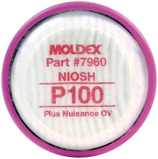 Filter, NIOSH Rating Nuisance Organic Vapor, P100, Magenta, Compatible with Brand and Series Moldex 7000 Series, Moldex 7800 Series, Moldex 9000 Series, Respirator Cartridge Type Air Purifying Respirator, Respirator Connection Type Bayonet, Package Quantity 2