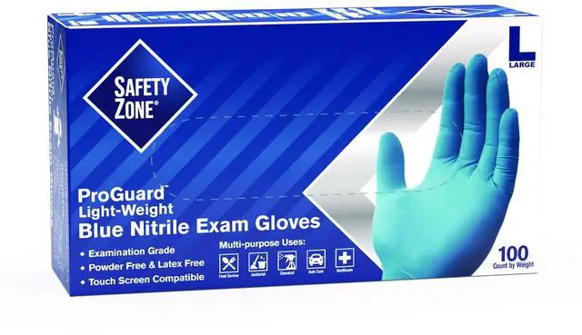 ProGuard Nitrile Gloves Powder-Free Large 3 mil Palm 3.5 mil Fingers Blue 100/Box 10 Boxes/Carton GNPRLG1A