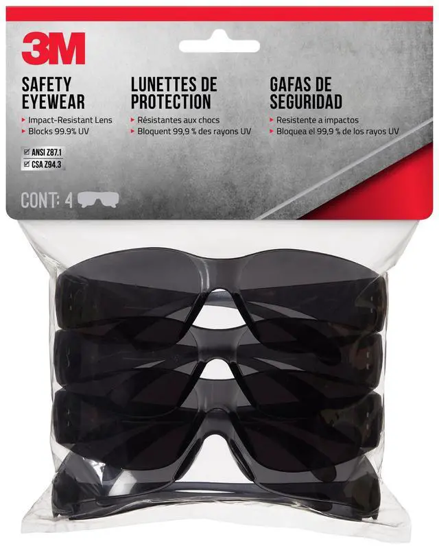 Protect your eyes and stay focused on the task at hand with the help of 3M Safety Eyewear. An excellent choice for you and all of your crew, these safety glasses help block small flying objects or particles, while providing essential protection from harmful UV rays. The sleek, wraparound design offers a flush, low profile look. They're available in two lens types, clear and tinted-so there's a great pair for your job. Maintain great visibility while keeping your eyes safely shielded with the scratch resistant protection of 3M Safety Eyewear.
