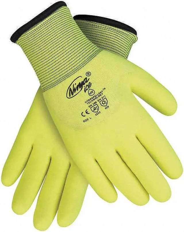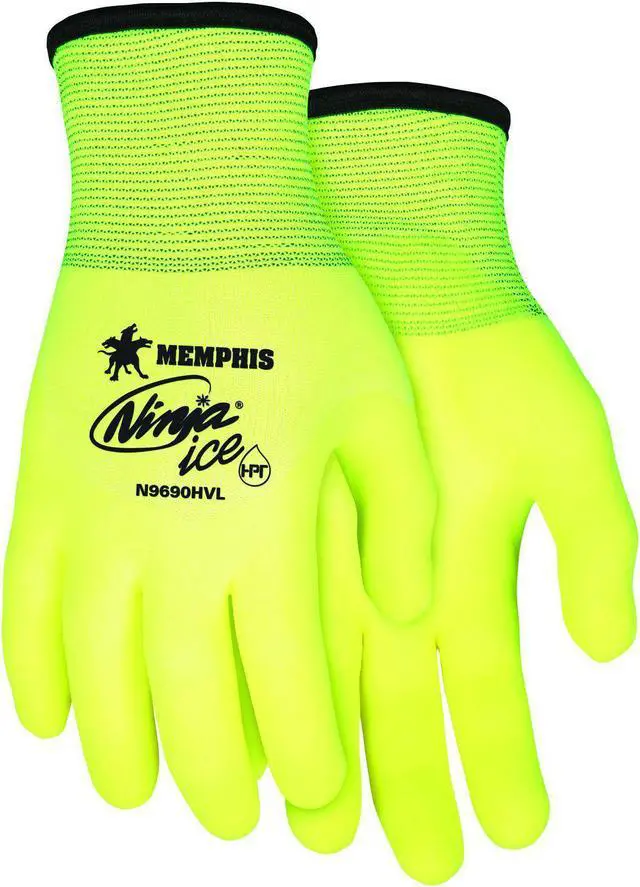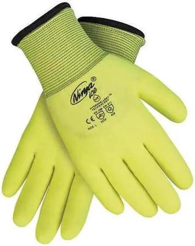 MCR Safety Ninja gloves are engineered to provide the highest level of innovation. Each of the offerings in the Ninja series includes a unique shell and polymer combination incorporating the latest in hand protection technology. The Ninja Glove Line offers the greatest assortment of dexterity, sense of touch, and protection. The Ninja Ice Hi Vis features a 15 gauge Hi Vis lime nylon shell with a 7 gauge acrylic terry interior liner. Hi Vis Lime HPT coated palm and fingertips.