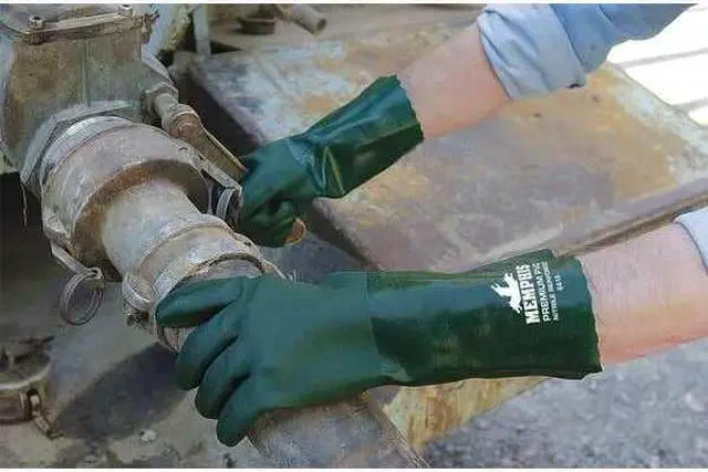 California Proposition 65: This product contains a chemical known to the State of California to cause birth defects or other reproductive harm. Chemical-Resistant Gloves, PVC, Fully, Not Rated, 18 in, Cuff Gauntlet, Lining Jersey, Glove Size L, Color Green, Supported, Standards EN388 4121, Resists Abrasions, Oils, Petrochemicals, Solvents, Package Quantity 12. This item has been restricted from sale in the following state (s): []