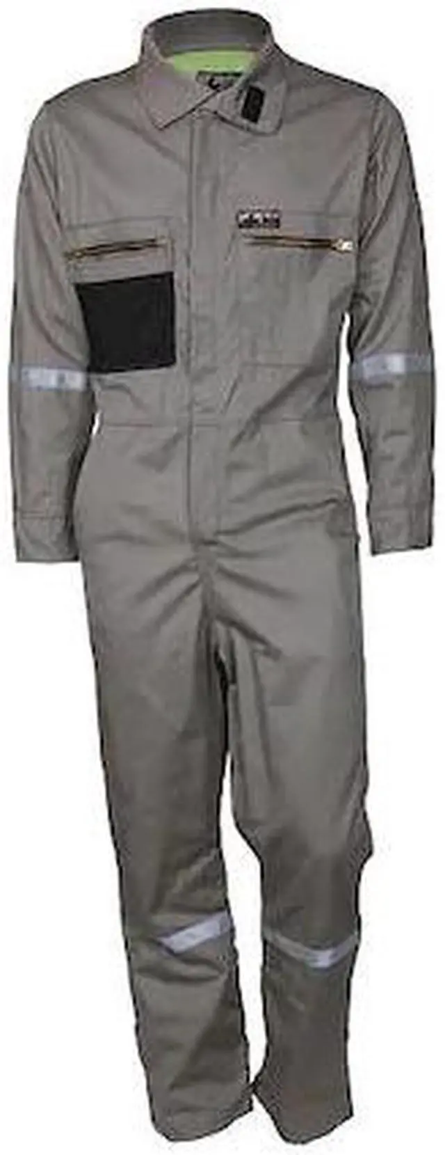 California Proposition 65: This product contains a chemical known to the State of California to cause birth defects or other reproductive harm. ATPV Rating 8.7 cal/sq cm, Ankle Closure Snaps, Arc Flash PPE Category 2, Closure Type Zipper, Collar Style Lay-Flat, Color Gray, Fabric Weight 7 oz, Features 1 in FR Silver Reflective Stripes on Arms and Legs, Elastic Waist Back for Movement and Fit, Patented Triple Vent Technology, Gender Men's, Inseam 30 in, Insulated for Cold Conditions No, Coverall, Material Trade Name Cotton, Maximum Chest Size 40 in, Maximum Waist Size 34 in, Minimum Chest Size 42 in, Minimum Waist Size 32 in