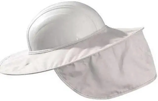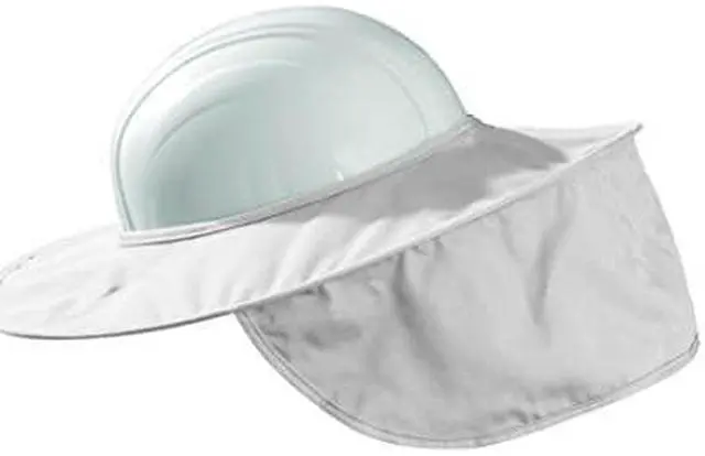 Visor with Neck Shade, Sun Shade Mounting Over-the-Hat with Wide Brim, Head Protection Color White, Material Cotton with Wire Spring Around Rim, For Use With Front and Full Brim Hard Hats