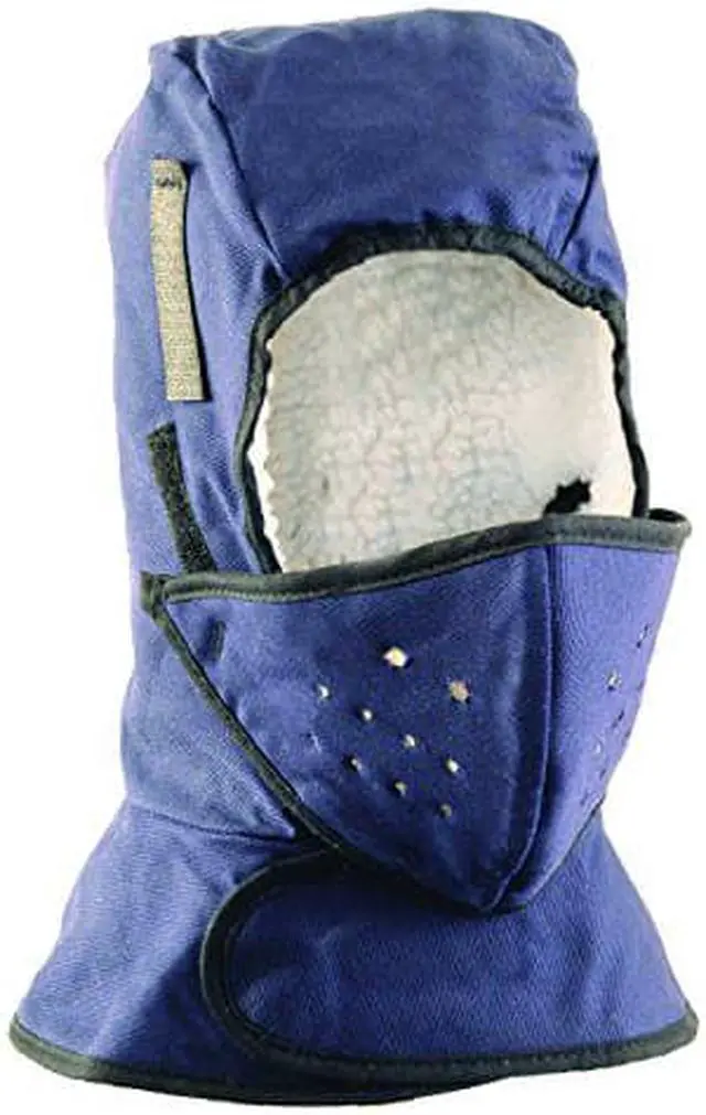 Winter Liner, Outer Material Cotton, Areas Covered Ears, Face, Head, Adjustment Type Hook-and-Loop, Outer Color Navy, Lining Material 50 Percent Acrylic, 50 Percent Polyester, Number of Layers 2, Size Universal, Includes Removable Mouthpiece
