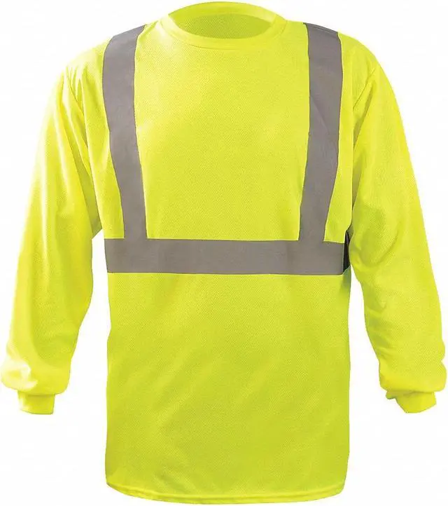 Long Sleeve T-Shirt, Gender Unisex, ANSI Class 2, Shirt Style T-Shirt, Back Stripe Pattern X, Material Polyester, Number of Outside Pockets 0, Front Closure Type Pullover, Collar Style Tagless Collar, Color Yellow, Size L, Size-Body Type Regular, Fabric Weight 3.8 oz, Reflective Stripe Border Type None, Garment Features None, Standards ANSI/ISEA 107-2015 Class 2 - Type R, CSA Z96-15, Sleeve Type Long, Maximum Chest Size 42 in, ANSI Type R, Features Up to UPF 30 Protection. This item has been restricted from sale in the following state (s): []
