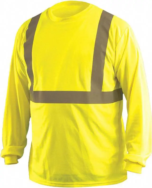 Long Sleeve T-Shirt, Gender Unisex, ANSI Class 2, Shirt Style T-Shirt, Back Stripe Pattern U, Material Polyester, Number of Outside Pockets 0, Front Closure Type Pullover, Collar Style Tagless Collar, Color Yellow, Size L, Size-Body Type Regular, Fabric Weight 3.8 oz, Reflective Stripe Border Type None, Garment Features Birdseye Texture, Standards ANSI/ISEA 107-2015 Class 2 - Type R, Sleeve Type Long, Maximum Chest Size 38 in, ANSI Type R, Features Absorbent, Launders Well, Lightweight, Soft. This item has been restricted from sale in the following state (s): []