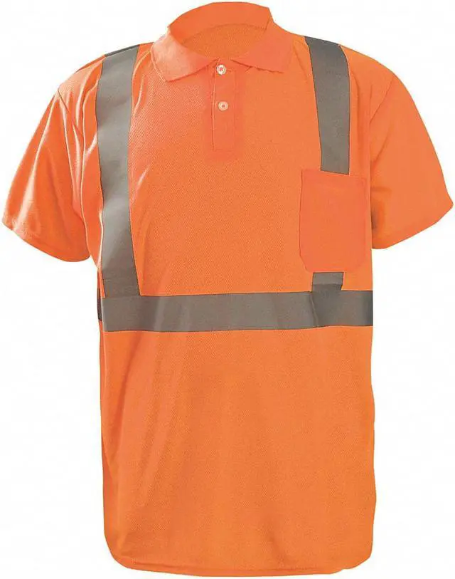 Polo Shirt, Gender Unisex, ANSI Class 2, Shirt Style Polo, Back Stripe Pattern U, Material Polyester, Number of Outside Pockets 1, Front Closure Type Buttons, Collar Style Tagless Collar, Color Orange, Size 2XL, Size-Body Type Regular, Fabric Weight 3.8 oz, Reflective Stripe Border Type None, Garment Features Birdseye Texture, Standards ANSI/ISEA 107-2015 Class 2 - Type R, Sleeve Type Short, Maximum Chest Size 50 in, ANSI Type R, Features Up to UPF 30 Protection, Minimum Chest Size 46 in.
