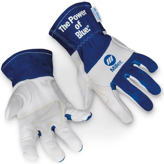 Designed for TIG welding and multi-purpose applications, these gloves from Miller feature a wool back for ultimate insulation, dual-padded palm for added comfort, and premium grain goatskin leather for superior flexibility and dexterity. Available in sizes Small to X-Large. Size Large.