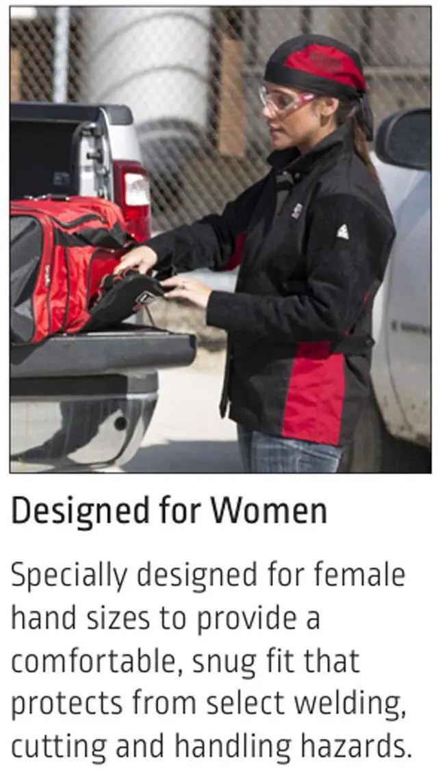 These general purpose women's gloves are constructed with heat and flame resistant split cowhide for all types of welding. Inside, the gloves feature a 100% soft sweat absorbent cotton lining for added comfort and heat resistance. Kevlar stitching and welted seams. Size Medium. Package of 1