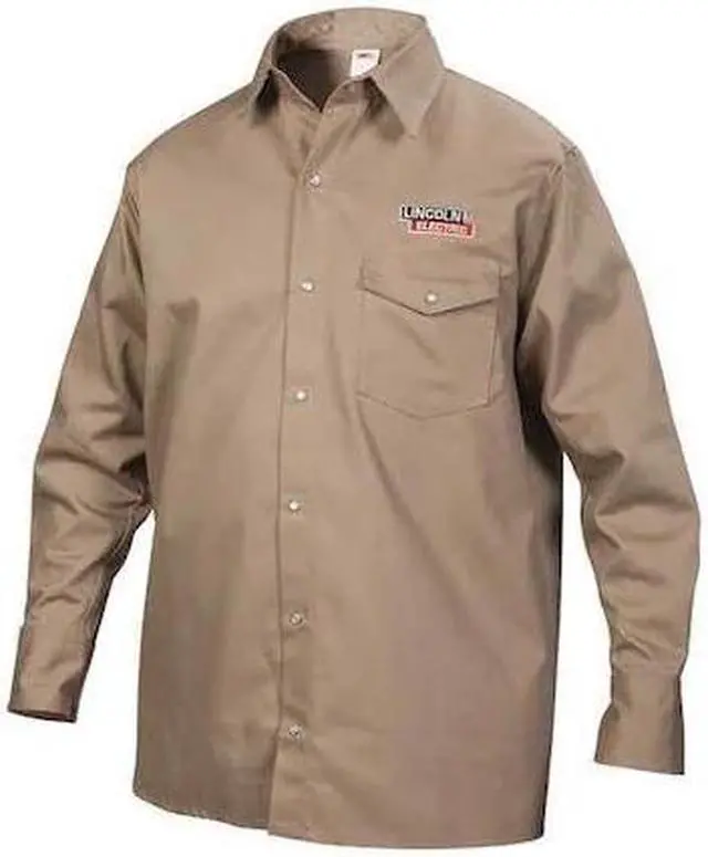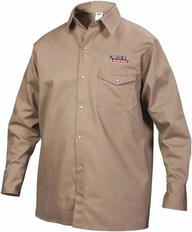 California Proposition 65: This product contains a chemical known to the State of California to cause birth defects or other reproductive harm. Color Beige, Fabric Weight 9 oz, Closure Type Snaps, Flame-Resistant Collared Shirt, Material Trade Name Excel FR (R), Maximum Chest Size 54 in, Minimum Chest Size 49 1/2 in, Neck Style Collar, Number of Pockets 0, Size XL, Sleeve Length 33 in