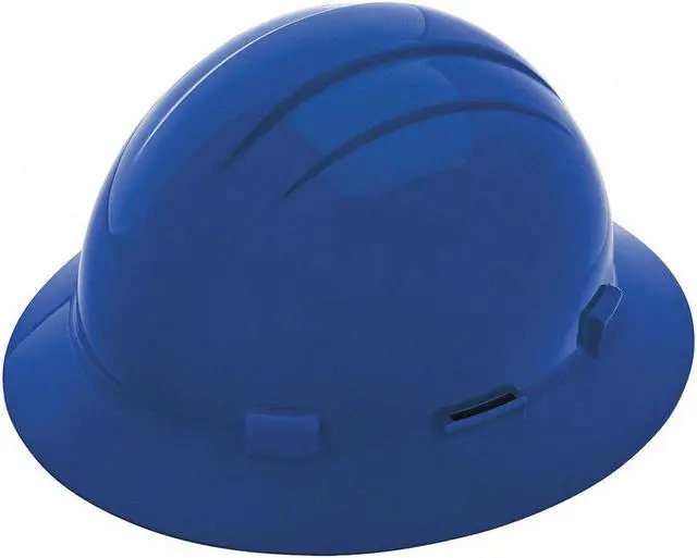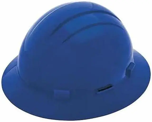 Hard Hat, ANSI Classification Type 1, Class E, Head Protection Style Full Brim, Head Protection Suspension Type Ratchet (4-Point), Head Protection Color Blue, Head Protection Graphics No Graphics, Fits Hat Size 6-1/2 to 8, Head Protection Material Polyethylene, Head Protection Venting No, High-Visibility No, Series Americana