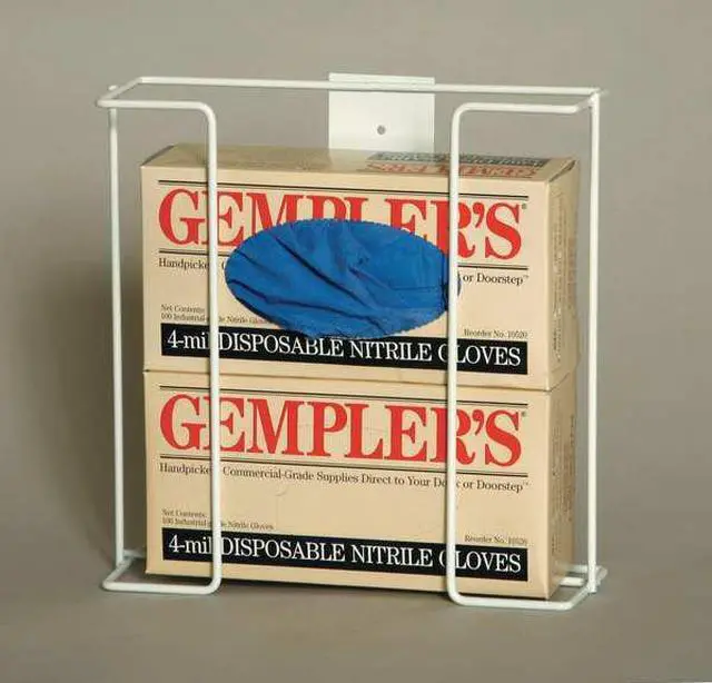 Glove Dispenser, Box Opening Orientation Front, Box Orientation Horizontal, Dimensions 10-1/2 in H x 11 in W x 4 in D, Dispenser Layout (2) Boxes, FDA Compliant Not FDA Compliant, Fill Direction Left Load, Glove Dispenser Type General Purpose, Dispenser Contains Standard Glove Box, Color White, Depth 4 in, Height 10 1/2 in, Material Enamel Coated Steel Wire, Width 11 in, Holder Mount Location Wall. This item has been restricted from sale in the following state (s): []