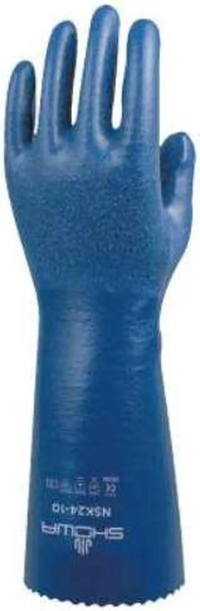 Chemical-Resistant Gloves, Nitrile, Fully, 15 mil, 14 in, Cuff Gauntlet, Lining Interlock Knit, Glove Size 10, Color Blue, Supported, Standards CE Rated, EN 388:2016 4112X, EN ISO 3374- 1:2016 /Type A JKLOPT, EN ISO 374- 5:2016, Resists Abrasion, Alcohols, Caustics, Puncture, Solvents, 1 Pair. This item has been restricted from sale in the following state (s): []