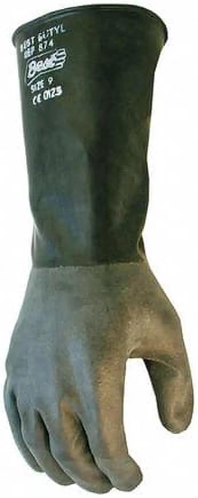 Chemical-Resistant Gloves, Butyl, Fully, 14 mil, 14 in, Cuff Rolled, Lining Unlined, Glove Size 7, Color Black, Unsupported, Standards CE Rated, EN 388:2016 0010X, EN 374- 2:2003, EN ISO 374- 1:2016 /Type B BIK, EN ISO 374- 5:2016 VIRUS, Resists Abrasion, Chemicals, Oils, 1 Pair. This item has been restricted from sale in the following state (s): []