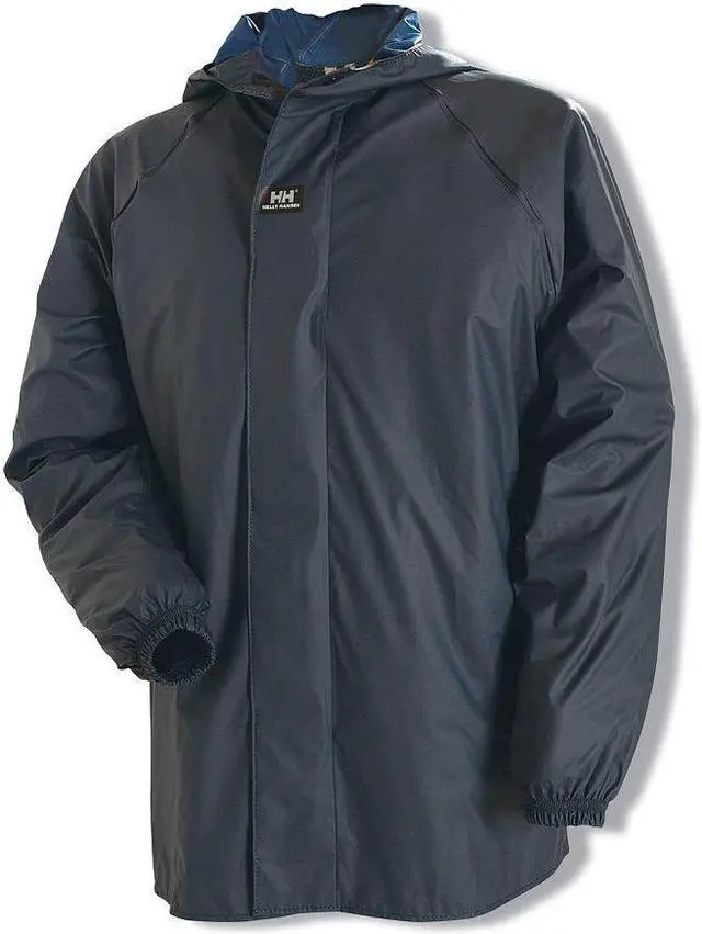 Rain Jacket with Hood, Garment Type Rain Jacket, Style Rain Jacket, Size M, Number of Inside Pockets 0, Number of Outside Pockets 0, Color Navy, Front Closure Type Zipper with Storm Flap, Gender Men's, Material Polyester/Polyurethane, High-Visibility No, ANSI Class Not Rated, Insulated for Cold Conditions No, Back Stripe Pattern None, Includes Hood Yes, Hood Style Attached, Length 31 1/2 in, Length Type Hip, Includes Removable Liner No, Includes Lining Yes, Maximum Chest Size 39 in. This item has been restricted from sale in the following state (s): []