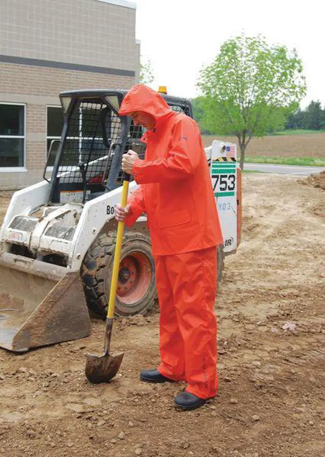 Rain Jacket, Garment Type Rain Jacket, Style Rain Jacket, Size 2XL, Number of Inside Pockets 0, Number of Outside Pockets 2, Color Orange, Front Closure Type Snap, Gender Men's, Material Polyester/PVC, High-Visibility No, Back Stripe Pattern None, Includes Hood Yes, Hood Style Attached, Length 33 in, Length Type Thigh, Includes Removable Liner No, Includes Lining Yes, Maximum Chest Size 48 1/2 in, Lining Material PVC Coated Knitted Polyester. This item has been restricted from sale in the following state (s): []
