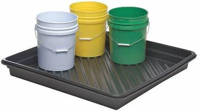 Spill Containment Tray, Color Black, Connectable No, Diameter 144 1/2 in, Dimensions 40 in L x 40 in W x 5 in H, Grate Material Not Applicable, Height 5 in, Includes Tray Only, Includes Drain No, Indoor/Outdoor Use Indoor, Outdoor, Inside Dia. 144 in, Length 40 in, Manufacturer Warranty 5 yr, Pour Spout No, Product Type Spill Containment Tray, Product Weight 11 lb, Recycled Content ( Percent) No Recycled Content, Shape Square, Space Saving Features Nestable, Spill Capacity 27 gal.